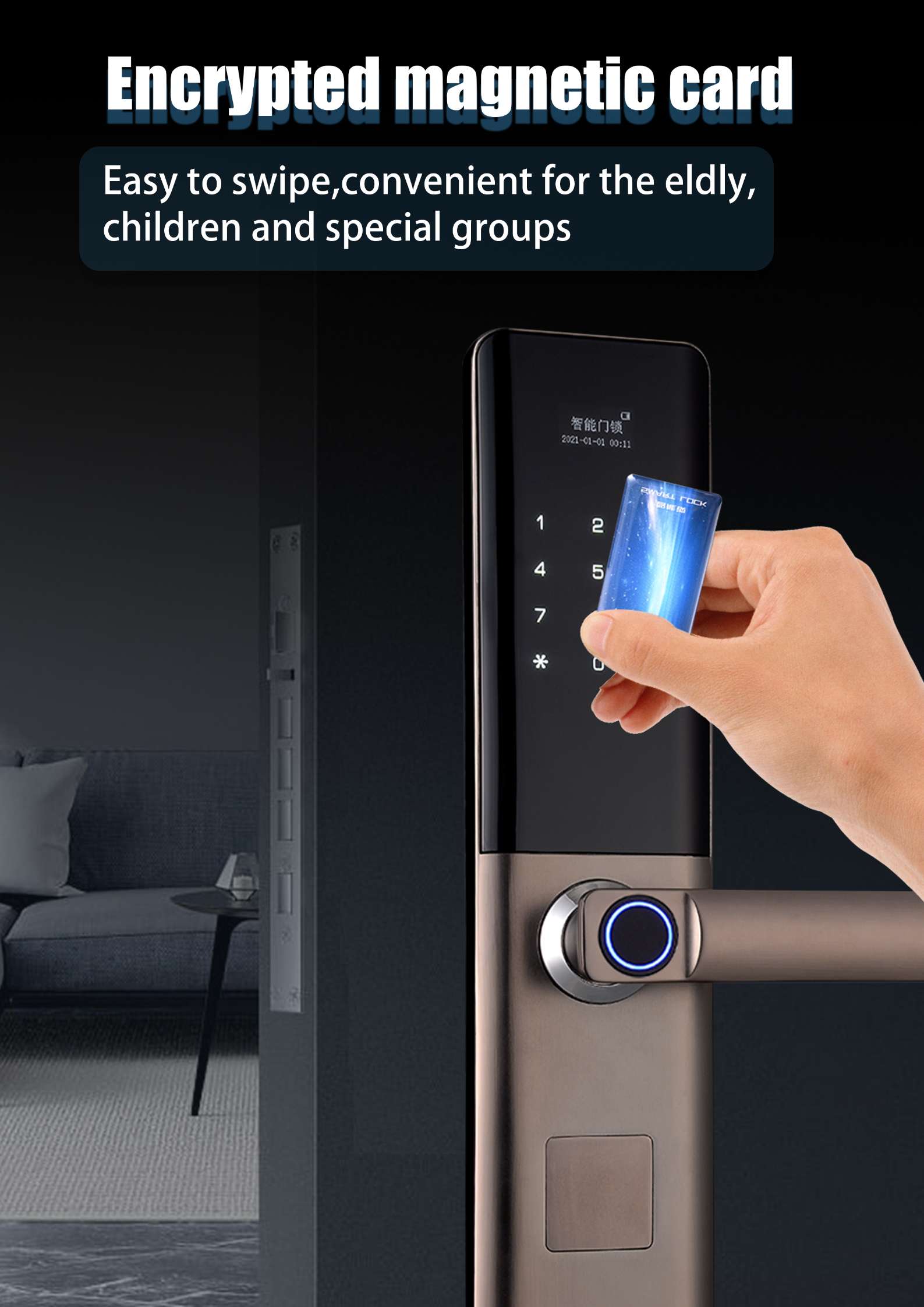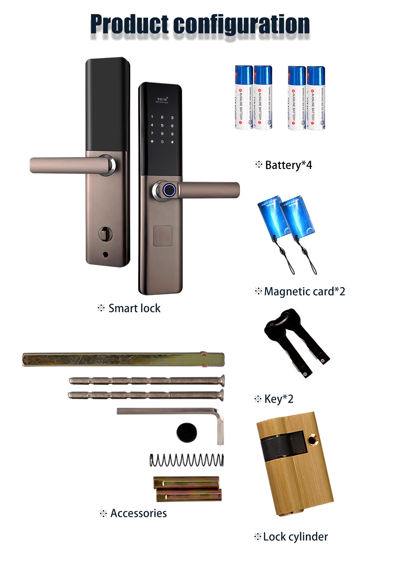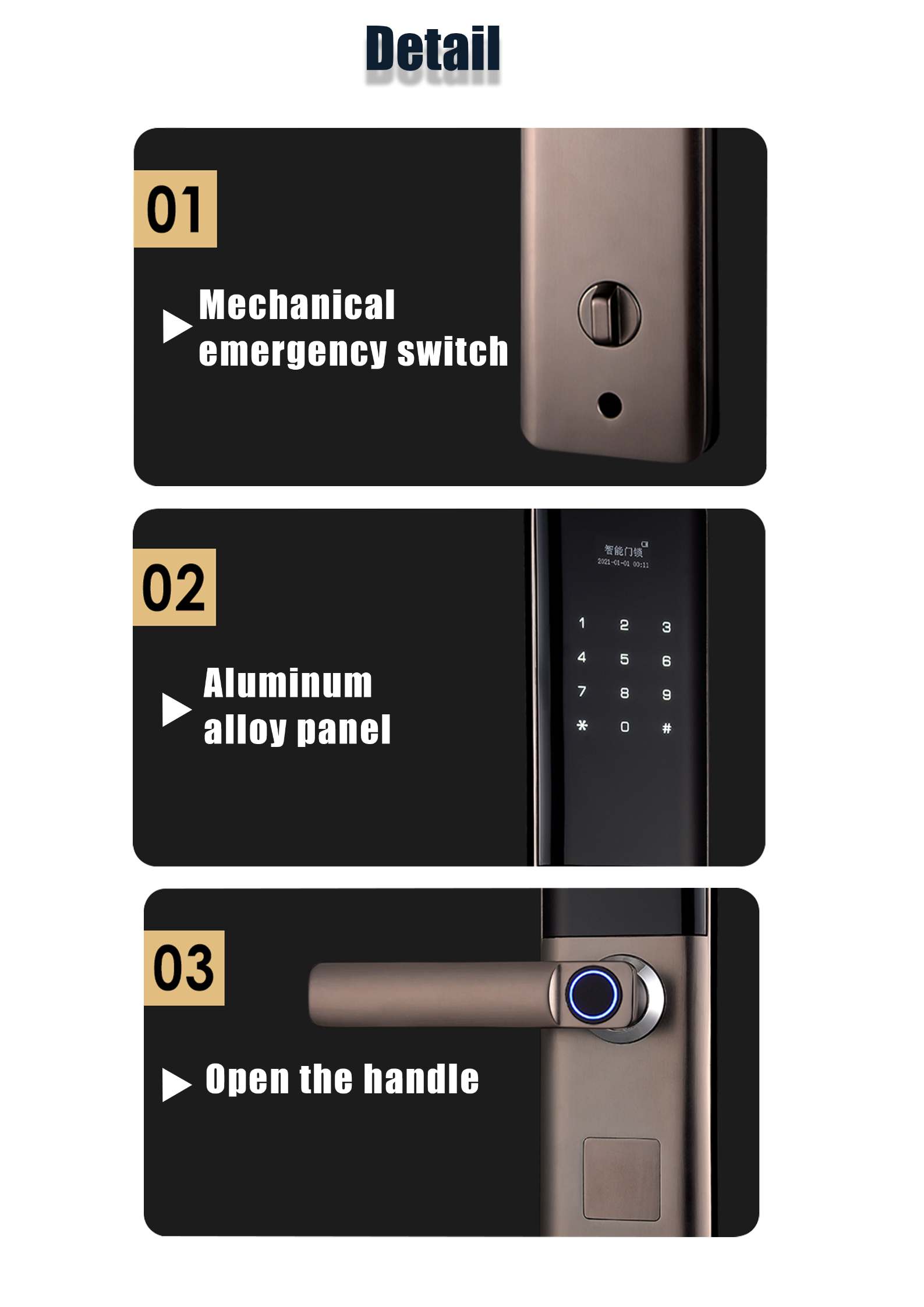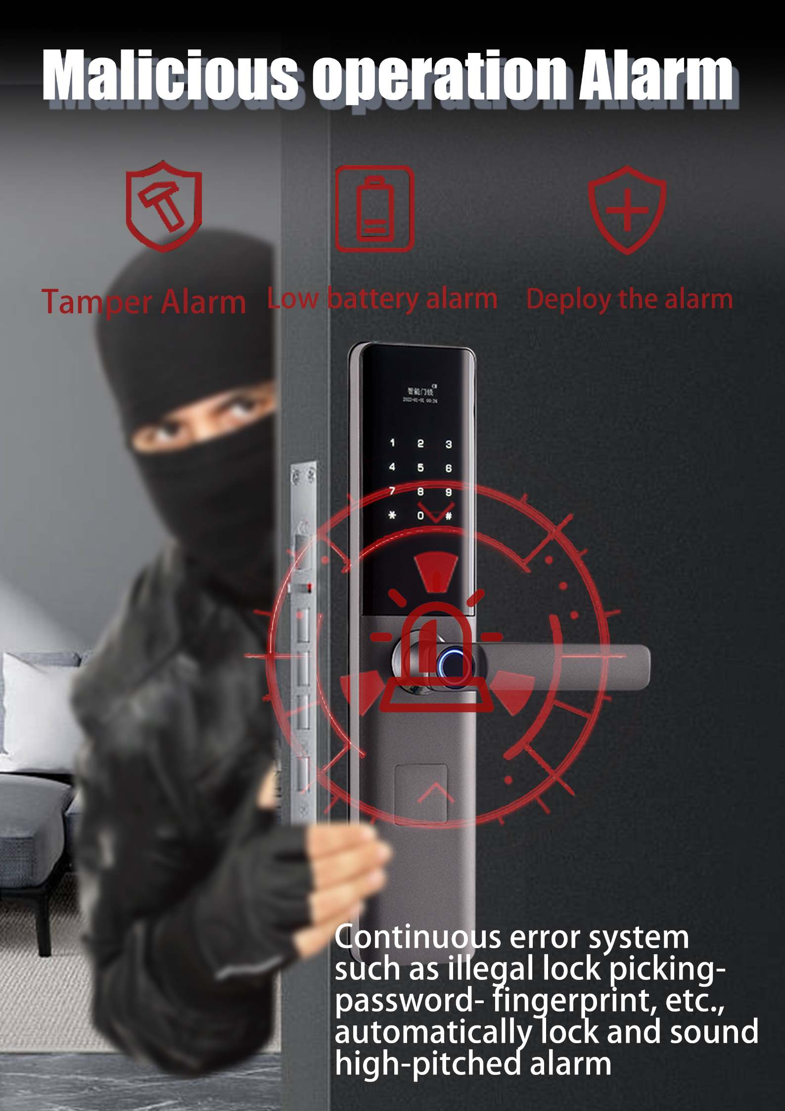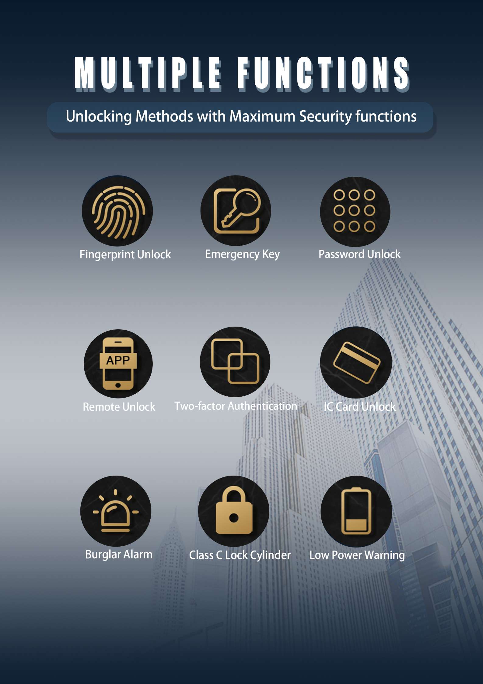- 5 phương pháp mở khóa: vân tay / mật khẩu / thẻ IC / chìa khóa cơ / điều khiển từ xa qua ứng dụng
