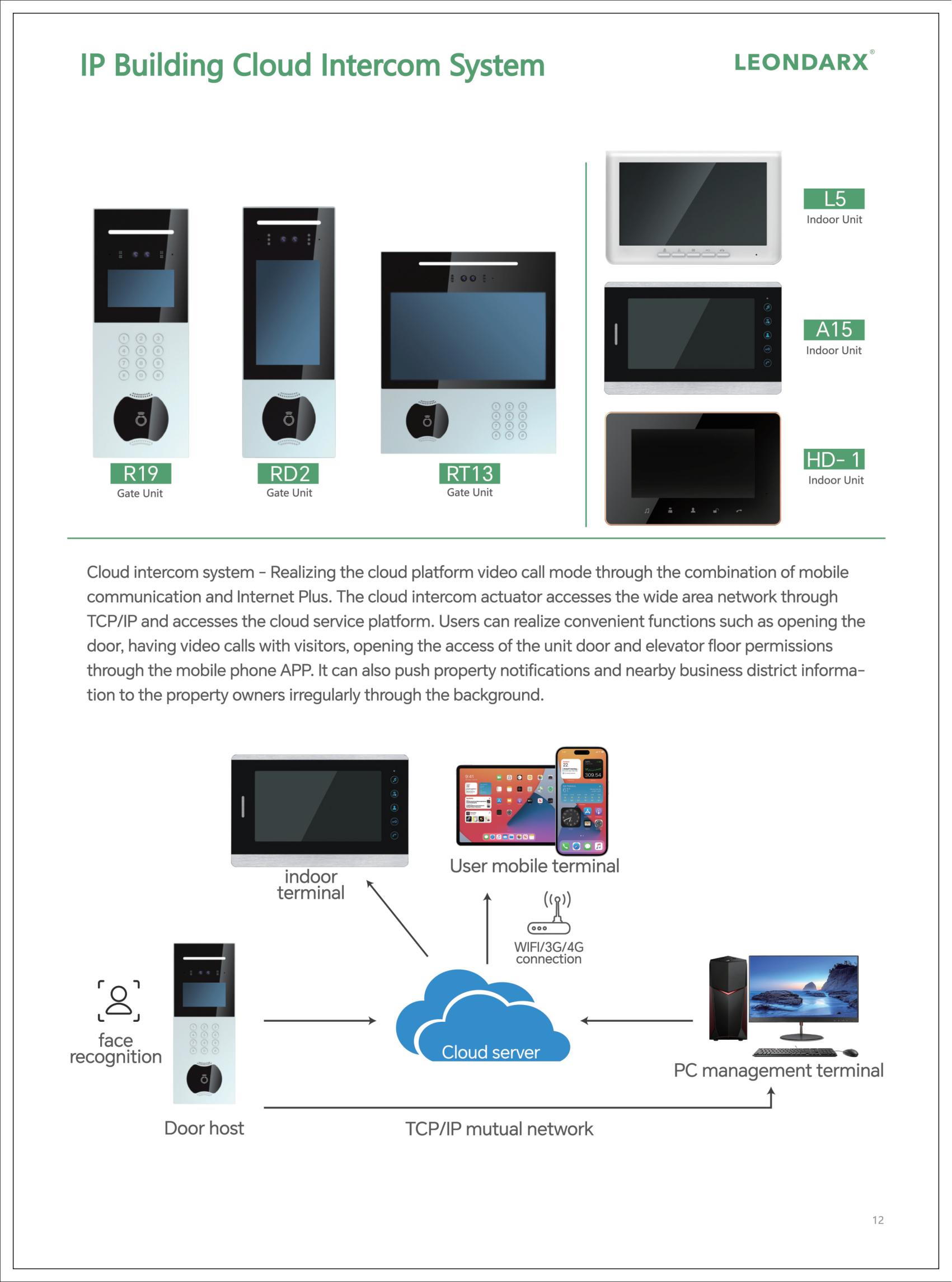 Thông qua việc tích hợp mạng TCP/IP, dịch vụ đám mây và kết nối di động, chủ sở hữu bất động sản có thể tận hưởng giao tiếp video thời gian thực, mở khóa từ xa và kiểm soát truy cập thông minh mọi lúc, mọi nơi.